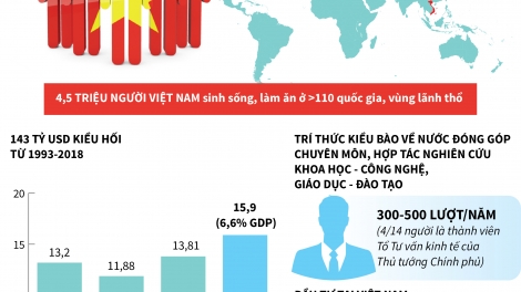 (VOVWORLD) - 1975년부터 베트남은 통일된 지 44년이 다 되었다. 지난 40년 넘게 발전해 나가는 과정에 인정하지 않을 수 없는 중요한 요인은 바로 해외에서 거주하고 있는 교포들의기여이다. 글로벌의 경쟁력 속에서 다른 나라에 뛰떨어지지 않게 국가 건설에 기여하는데에 교포들의 노력을 언급하지 않으면 안 될 정도로 중요한 역할이다.