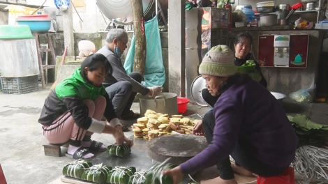 (VOVWORLD) - 하남(Hà Nam)성 푸리(Phủ Lý)시 리엠뚜옌(Liêm Tuyền)면 빅찌(Bích Trì) 마을, 덤(Đầm) 마을의 주민들은 전통 설 음식인 고소한 바인쯩 준비로 분주하다.