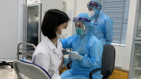 (VOVWORLD) - 5월 6일 하노이 바익마이(Bạch Mai) 병원에서 보건부 응우옌 타인 롱 (Nguyễn Thanh Long) 장관, 차관, 각 부처 지도자들은 코로나19 백신을 접종했다.