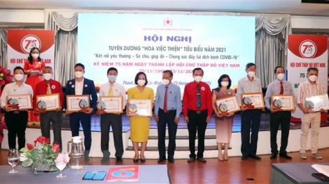 (VOVWORLD) - 베트남 적십자회 설립 75주년을 맞아 11월 23일 호찌민시 적십자회는 ‘코로나19 퇴치를 위한 사랑, 나눔, 도움, 협력’을 주제로 2021년 대표 ‘선행’ 표창 회의를 개최했다.