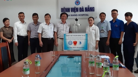 5월 26일 오전 다낭기술사범대학은 다낭병원에 자외선 항균 로봇을 기증했다