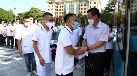 (VOVWORLD) - 7월 29일, 42명의 간호사, 기술자, 의사를 포함하는 하장(Hà Giang)성의 의료진이 코로나19 방역을 지원하기 위해 호찌민시로 떠났다. 의료진은 환자 검사, 치료, 접촉자 추적, 코로나19 검체 채취 등 임무를 담당한다.