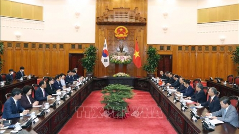 (VOVWORLD) - 11월 2일 오후 정부 청사에서 응우옌 쑤언 푹 (Nguyễn Xuân Phúc) 국무총리는 박병석 한국 국회의장과 회견을 가졌다. 이 자리에서 응우옌 쑤언 푹 국무총리는 베트남은 한국과의 관계를 매우 귀중하게 생각한다며, 한국과의 포괄적 전략 파트너십을 계속적으로 더 광범위하게 강화시켜 나가고자 한다고 밝혔다.