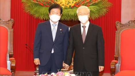 응우옌 푸 쫑 당서기장-국가주석, 한국 박병석 국회의장과 회담