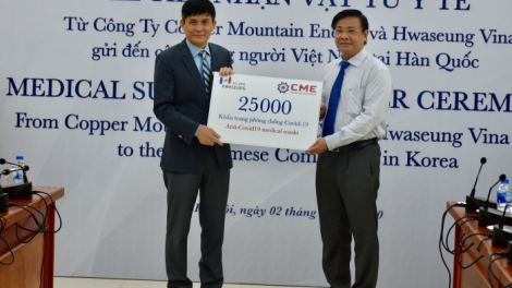 (VOVWORLD) - 6월 2일 오전 하노이에서 해외거주 베트남인 정부위원회는 Copper Mountain Energy 회사, 화승비나 LLC회사로부터 코로나 19 방역장비를 지원 받아 한국 거주 베트남인을 위한 코로나19 방역 장비를 전달하는 행사를 개최하였다.