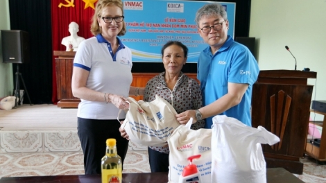 (VOVWORLD) - 5월 26일 꽝빈 (Quảng Bình)성에서 베트남-한국 지뢰피해극복 협력사업 대표는 꽝빈(Quảng Bình)성과 빈딘(Bình Định)성의 지뢰 피해자 가정 9,100명에게 식품, 마스크, 손소독제 등을 기증했다.