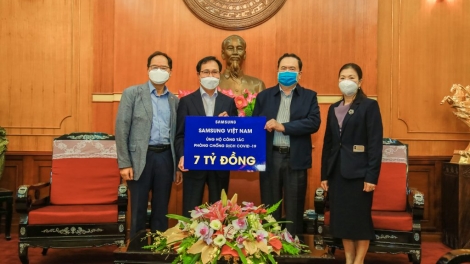 (VOVWORLD) - 베트남 삼성은 코로나19 방역 상황에서 베트남 정부와 협력하는 차원에 베트남 조국전선중앙위원회에 70억 동을, 박닌(Bắc Ninh)과 타이 응우옌 (Thái Nguyên)성 조국전선위원회에 30억 동을 각각 지원했다.