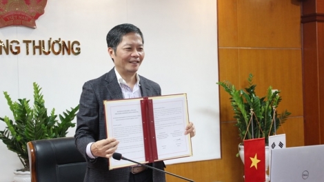 (VOVWORLD) - 4월 13일 오후 공상부 청사에서 쩐 뚜언 아인 (Tran Tuan Anh) 공상부 장관은 성윤모 한국 산업통상자원부 장관과 온라인 회담을 가졌다.