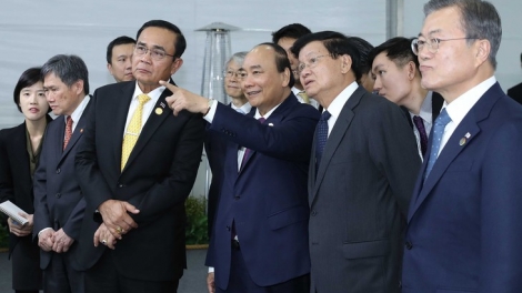 (VOVWORLD) - 11월24일 응우옌 쑤언 푹 (Nguyễn Xuân Phúc) 총리는 문재인 대통령 및 아세안 지도자들과 함께 부산 강서구 Eco-Delta 스마트도시 건설 기공식에 참여했다.