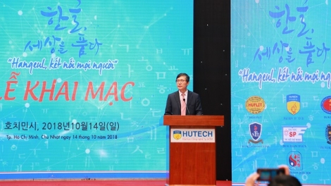 (VOVWORLD) - 10월14일 호치민 과학기술대가 주호치민시 한국 총영사관, 한국 국제교류재단, 한국국제협력단과 협력하여 2018한글날 축제를 열었다. 이번 축제에는 남부 지방의 14곳의 대학 및 전문대학 대학생들이 참가하였다.