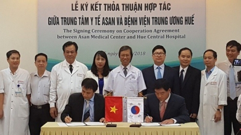 (VOVWORLD) - 10월16일 Hue시에서 Hue 중앙 병원과 서울아산병원 (한국) 간의 지역 및 국제적 차원의 간 이식 프로그램 협력협약 서명식이 열렸다.
