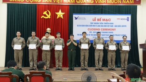 (VOVWORLD) - 4월 28일 오전 하노이에서 베트남 국방부 산하 국가지뢰센터(VNMAC)는 한국국제협력단(KOICA, 코이카), 유엔개발계획(UNDP)과 협력해 ‘한-베트남 평화마을(KVPVP)을 위한 지뢰 제거’ 프로젝트에 참석하는 기술자와 팀장들을 위한 훈련 코스를 폐막했다.