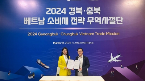 (VOVWORLD) - 대한무역투자진흥공사(KOTRA) 하노이 무역관은 지난 3월 12일 하노이 롯데 호텔에서 2024년 경상북도‧충청북도 베트남 소비재 전략 무역사절단 행사를 개최했으며 이 자리에서 양국 기업들이 약 100건의 협력 관계를 성공적으로 맺혔다고 밝혔다.