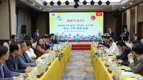 (VOVWORLD) - 베트남 박닌- 한국 구미 경제포럼이 두 도시는 물론 양국 간 교류와 협력을 촉진하면서 베트남과 한국 수교 30주년을 기념하기 위해 10월 20일 오후 박닌시에서 열렸다. 브엉 꾸옥 뚜언(Vương Quốc Tuấn) 박닌성 인민위원회 상임부위원장과 한국 구미시 김장호 시장이 포럼을 주재했다.