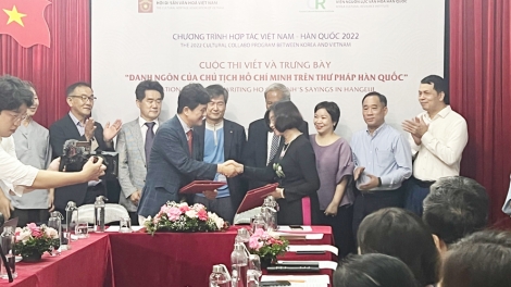 (VOVWORLD) - 9월 22일 오후 하노이 문묘-국자감에서 베트남 문화유산협회와 한국문화콘텐츠진흥원은 문화교류행사 공동 개최에 대한 MOU를 체결했다.