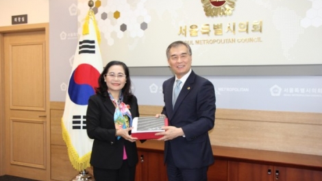 (VOVWORLD) - 방한 중인 응우옌 티 레(Nguyễn Thị Lệ) 호찌민시 인민의회 의장을 포함한 인민의회 대표단은 9월 22일 김현기 서울시의회 의장과 만남을 가졌다.