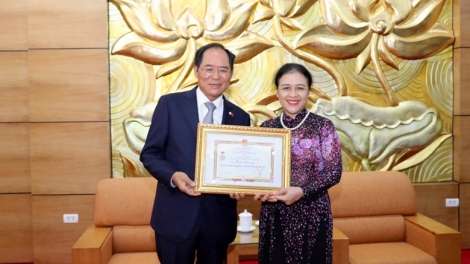 (VOVWORLD) - 10월 4일 하노이에서 응우옌 프엉 응아 Nguyễn Phương Nga) 베트남 우호단체연합 회장은 박노완 주베트남 한국대사에게 ‘국가간 평화와 우정’의 뜻을 담은 메달을 수여했다.