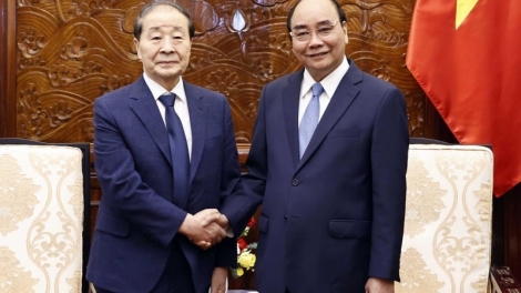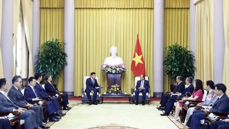 (VOVWORLD) - 8월 31일 주석궁에서 응우옌 쑤언 푹 주석은 신동빈 롯데그룹 회장을 접견했다.