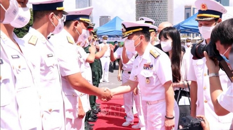 (VOVWORLD) - 9월 14일, 470명의 한국 해군의 ROKS 한산도함 및 ROKS 대청함이 호찌민시에 입항해 한국-베트남 수교 30주년(1992년~2022년)을 기념하는 우호 방문 일정을 시작했다.
