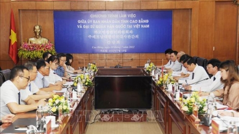(VOVWORLD) - 7월 18일 쩐 홍 민(Trần Hồng Minh) 까오방성 당서기는 까오방성을 방문한 박노완 주베트남 한국대사를 접견했다.