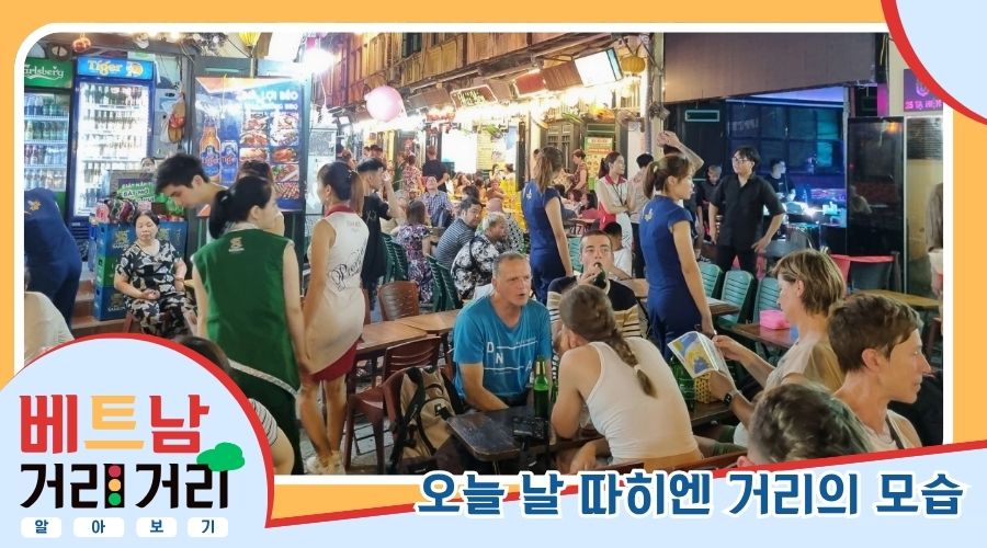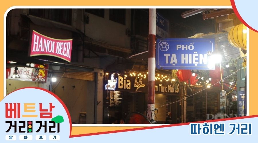 홍응옥: 하지만 밤이 찾아오면, 따히엔 거리는 완전히 다른 모습으로 변신합니다. 화려하고 활기찬 옷으로 갈아입는다고 할 수 있죠. ‘국제 사거리’라는 별명처럼, 이곳은 젊은이들에게 익숙한 장소일 뿐만 아니라 수도 하노이를 찾는 전 세계 관광객들을 끌어들이는 자석 같은 곳입니다. 수많은 비어 허이(bia hơi, 생맥주) 가게, 바, 레스토랑이 빼곡히 문을 열고, 다채로운 색깔의 등불이 거리를 환하게 밝힙니다. 잔 부딪히는 소리, 활기찬 대화 소리, 그리고 신나는 음악 소리가 한데 어우러져 생동감 넘치는 소리의 향연을 만들어냅니다.