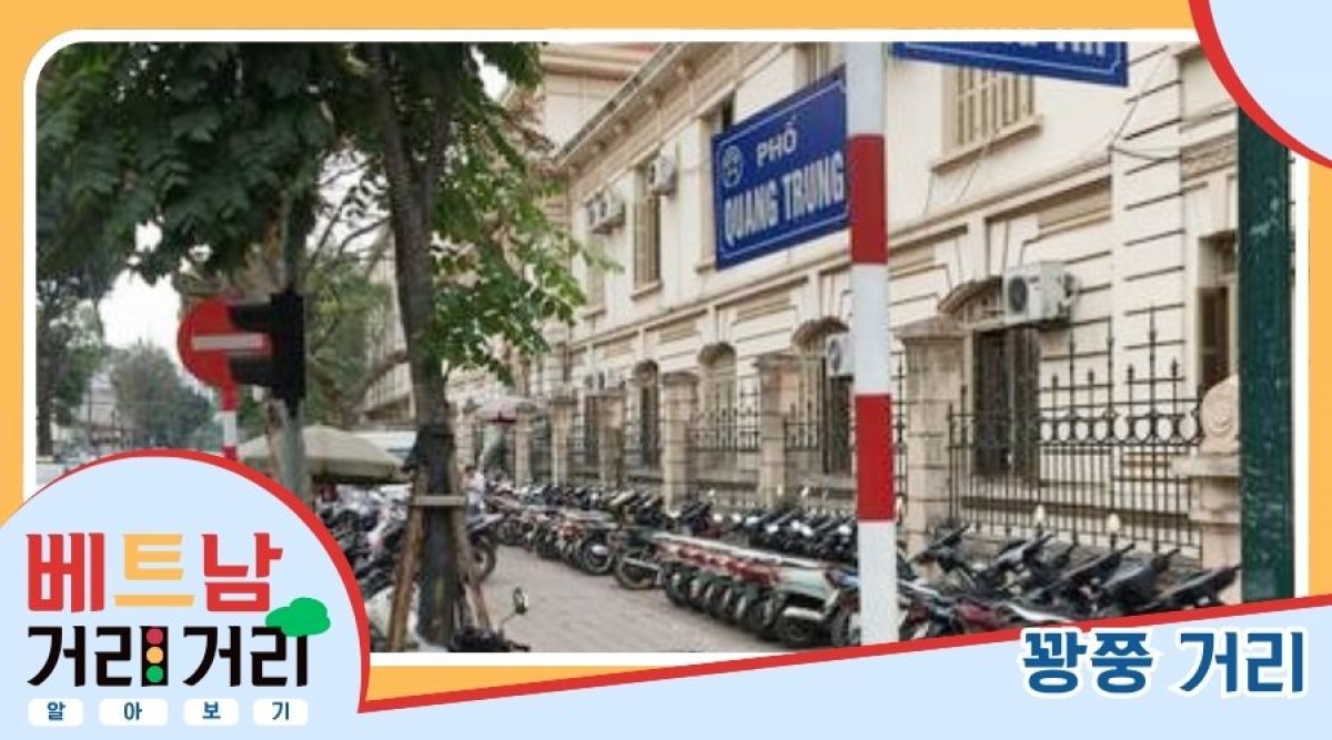 이 꽝쭝 거리는 길이 약 1.1킬로미터로, 성 요셉 대성당 뒤편에 있는 짱티(Tràng Thi) 거리와 냐쭝(Nhà Chung) 거리의 교차점에서 시작해, 쩐년똥(Trần Nhân Tông) 사거리까지 이어지며 티엔꽝(Thiền Quang) 호수의 탁 트인 풍경과 맞닿아 있습니다. 폭 10미터에서 12미터 정도 되는 도로 양옆으로는 푸른 가로수가 늘어서 있어 시원한 그늘을 드리우고요. 덕분에 북적이는 구시가지와는 또 다른, 이 거리만의 차분하고도 품격 있는 분위기를 느낄 수 있습니다. 특히 꽝쭝 거리는 하노이 중심부의 끄어남(Cửa Nam)동과 하이바쯩(Hai Bà Trưng)동에 걸쳐 있다는 점도 특징입니다.
