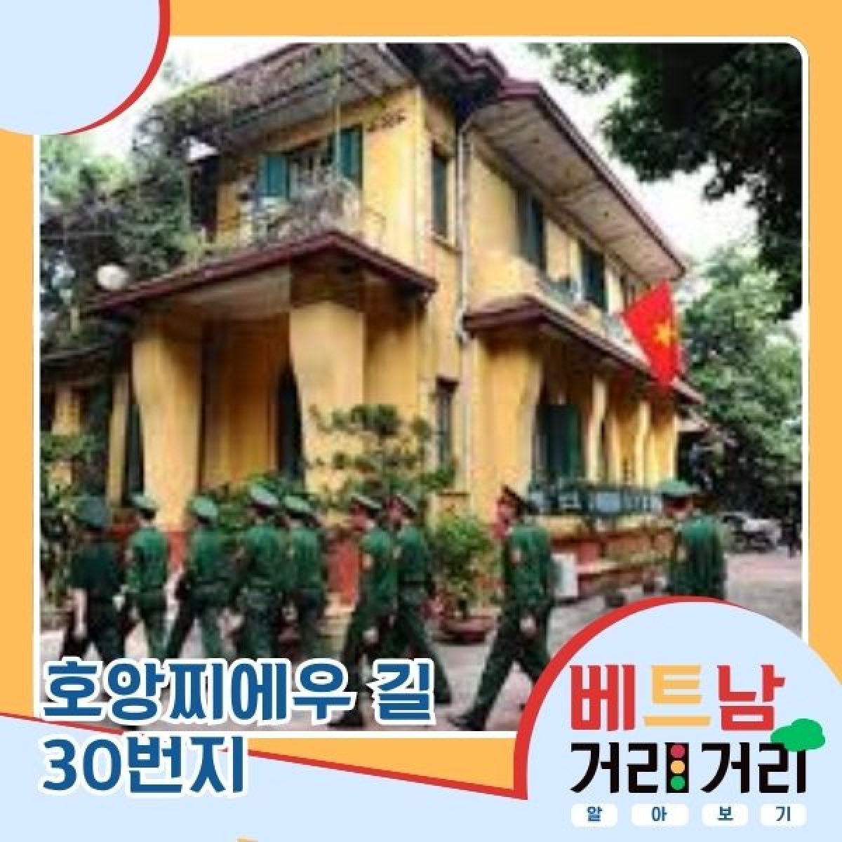 뚱응옥: 그런데 말이죠, 호앙지에우 길에는 황성만 있는 게 아니에요. 하노이의 역사와 문화에 대한 저마다의 이야기를 품은 특별한 명소들이 모여 있거든요. 그중에서도 30번지에는 싱그러운 가로수와 고풍스러운 노란 벽 뒤에 조용히 숨어 있는 오래된 프랑스식 빌라가 있습니다. 바로 고(故) 보 응우옌 잡(Võ Nguyên Giáp) 대장님이 60년 넘게 머무셨던 자택입니다. 이 집은 약 200제곱미터 규모로, 정원과 연못, 그리고 아름다운 난초 덩굴이 어우러진 섬세한 인도차이나 건축 양식을 띠고 있어요. 베트남 사람들에게 이곳은 단순한 건축물을 넘어, 베트남 인민군의 ‘큰형님’이셨던 대장님의 소박하고 겸손하지만 위대한 삶의 방식이 고스란히 묻어나는 뜻깊은 ‘붉은 주소’, 즉 역사적 명소랍니다.