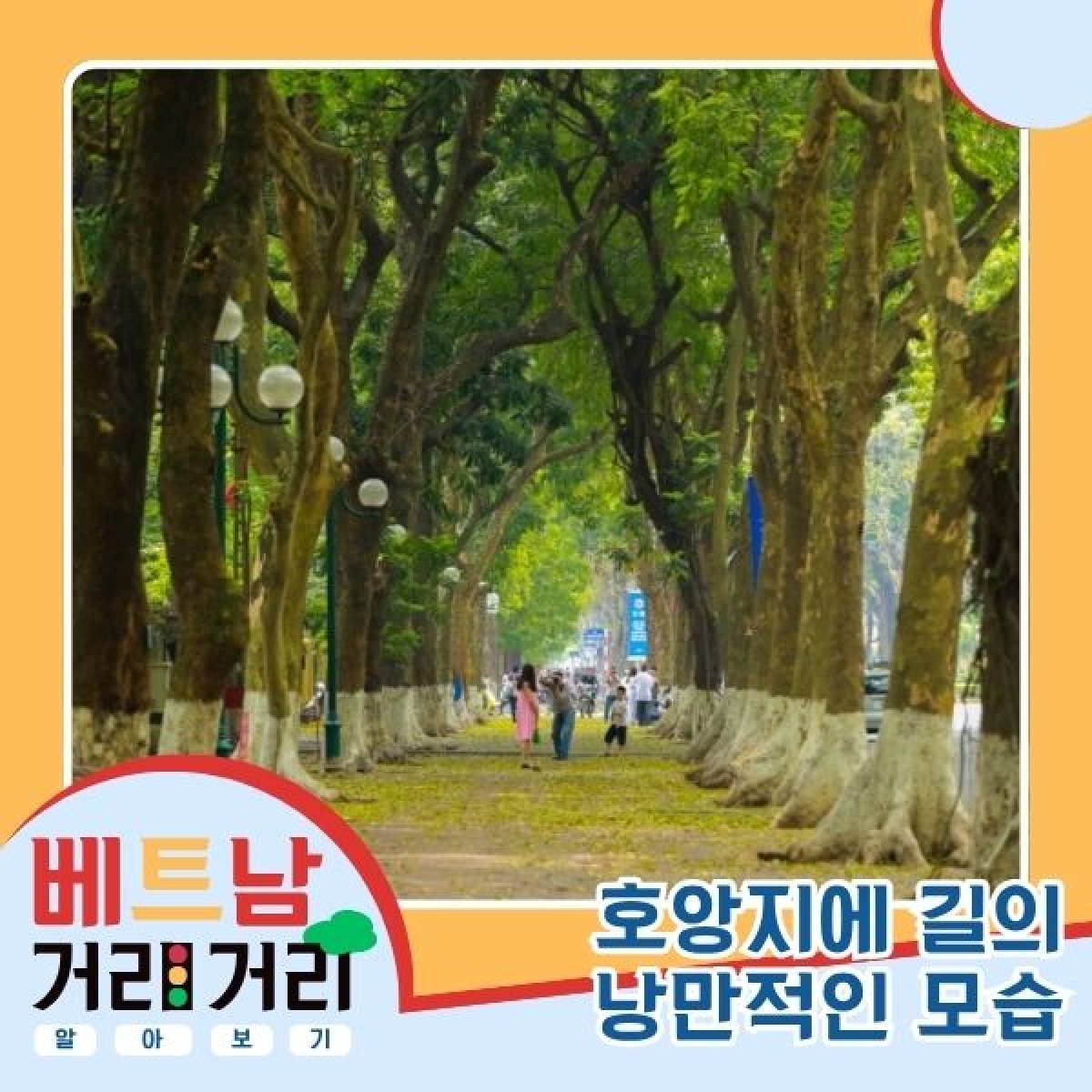 홍응옥: 세월의 흔적이 묻어나 거칠거칠한 이 커다란 싸끄 나무 기둥들은, 시원한 그늘을 내어줄 뿐만 아니라 공기를 맑게 해 줍니다. 덕분에 호앙지에우 길은 도시의 시끄러운 일상과는 뚝 떨어진 듯, 언제나 차분하고 고즈넉한 분위기를 풍기죠. 특히 봄이 찾아오는 2월과 3월이면, 거리는 보랏빛과 하얀빛의 눈부신 반(Ban, 바우히니아) 꽃으로 화사하게 물듭니다. 꽃이 만발하는 시기에는 수천 명의 시민과 관광객들이 이 아름다운 순간을 사진에 담기 위해 찾아온답니다.