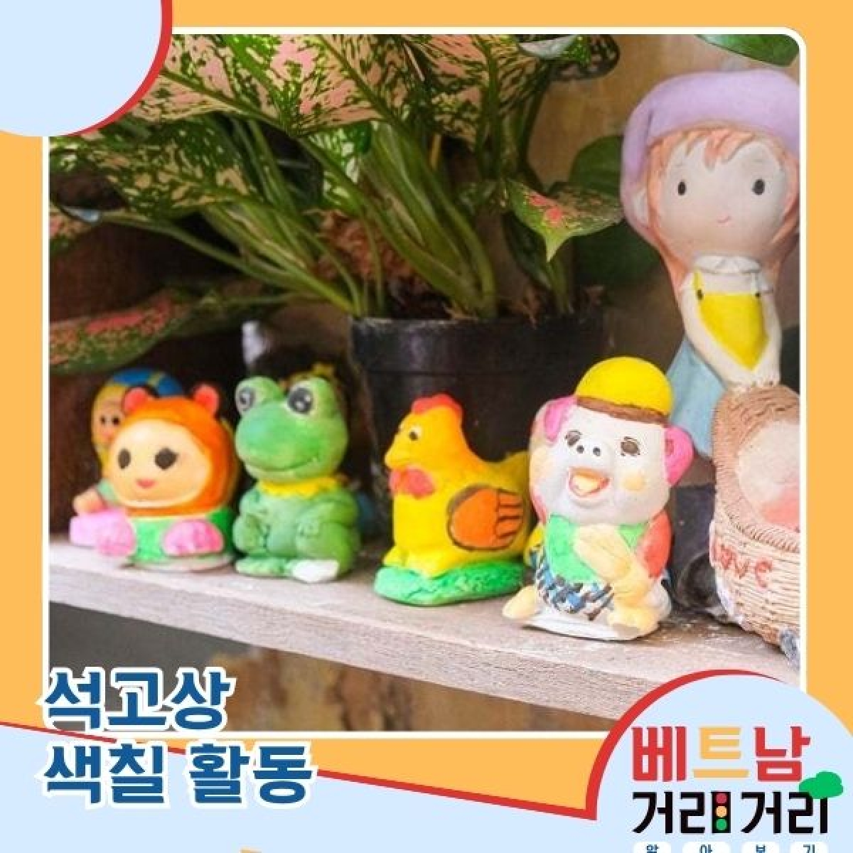 홍응옥: 맞아요. 특히 이 거리를 이야기할 때, 탁 트인 서호가 한눈에 내려다보이고 시원한 바람을 느낄 수 있는 카페들을 빼놓을 수 없겠죠. 글쎄요, 응우옌딘티 거리는 하노이 카페 문화의 ‘성지’이자, 하노이 청춘들의 만남과 데이트 명소라고 해도 과언이 아닐 거예요. 그런데 말이죠, 이곳 카페들만의 아주 특별한 트레이드마크가 하나 있습니다. 바로 ‘석고상 색칠하기’인데요. 친구나 연인들이 나란히 앉아, 향긋한 커피 한 모금을 음미하며 경치를 즐기고, 또 새하얀 석고상 위에 알록달록 색을 입히며 세상에 단 하나뿐인 나만의 작품을 만드는 거죠. 청취자 여러분도 일상 속에서 기회가 되신다면 꼭 한 번 들러 이 소소한 행복을 경험해 보셨으면 좋겠네요.