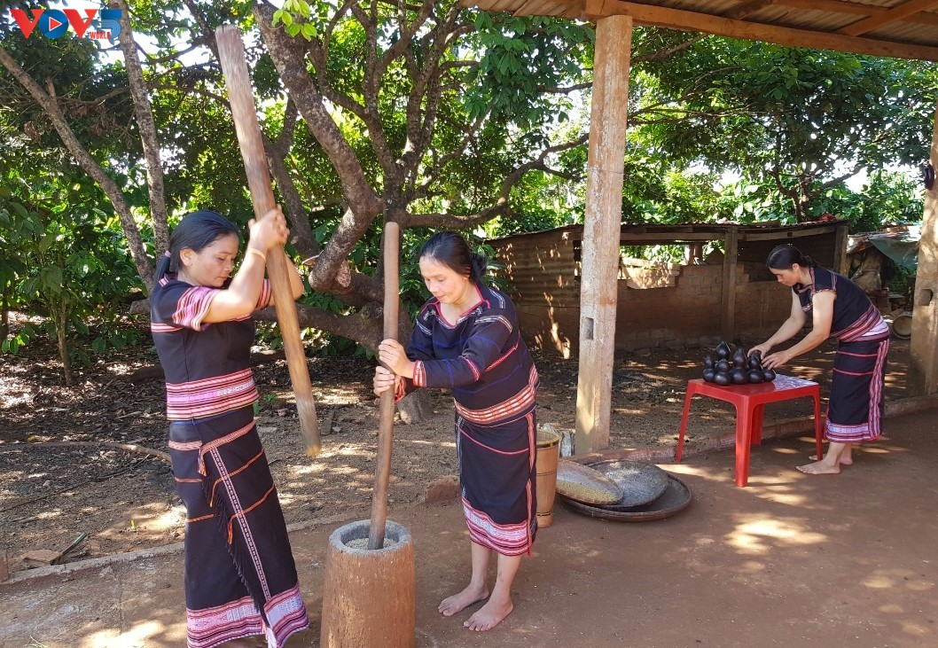 자라이족 여성이 쌀을 찧는 모습 (사진: 응옥 아인/VOV5) |