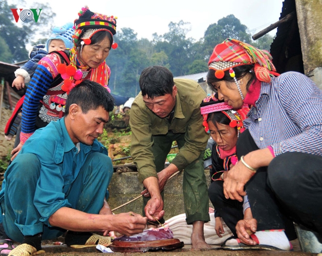 Ha Nhi족의 제사 의식은 주로 여자가 하는 일이지 남자는 별로 하지 않습니다. 가정에서 여자가 모든 집안 일을 담당하는 거니까요. 의식이 간단하고 있는 대로 지내는 것입니다. 돼지를 키우면 잡아서 돼지고기로 제사를 지내고, 닭이 있으면 닭 고기를 밥, 술과 같이 제사를 지냅니다.