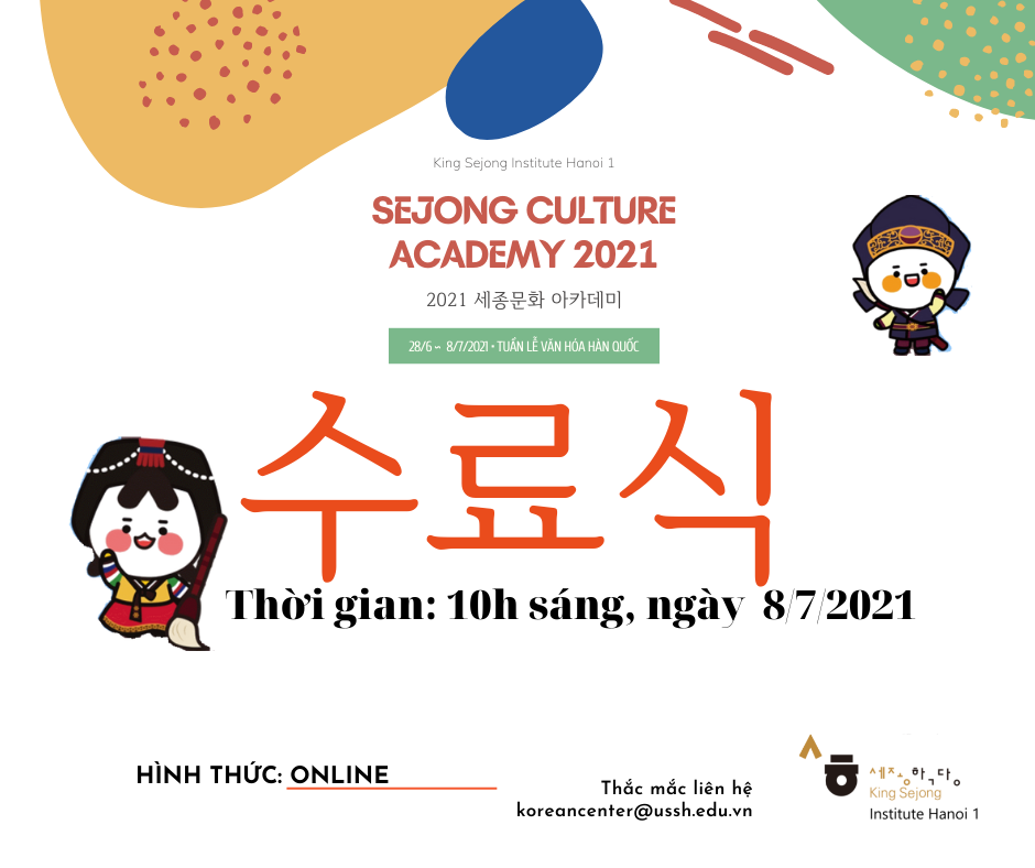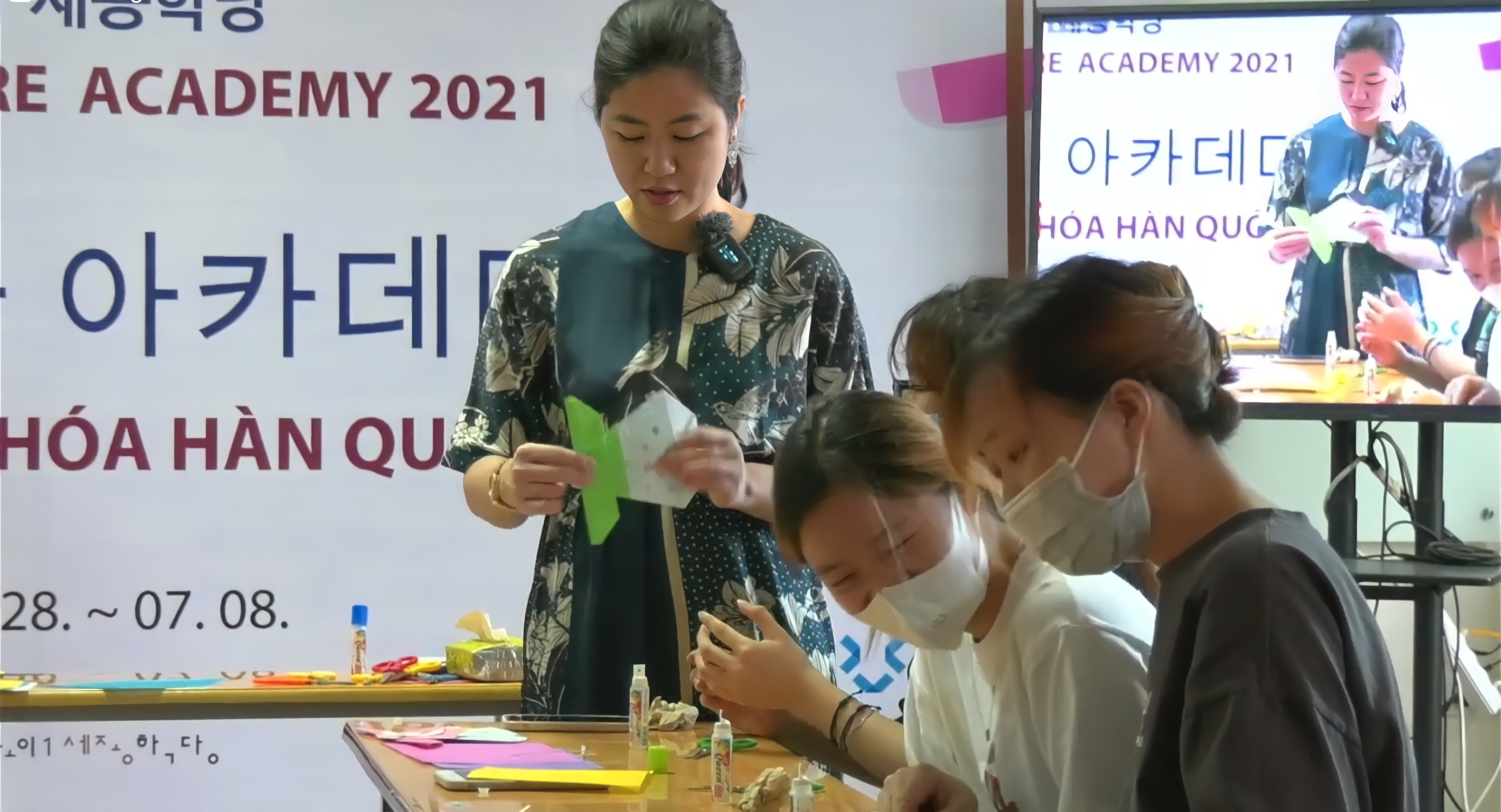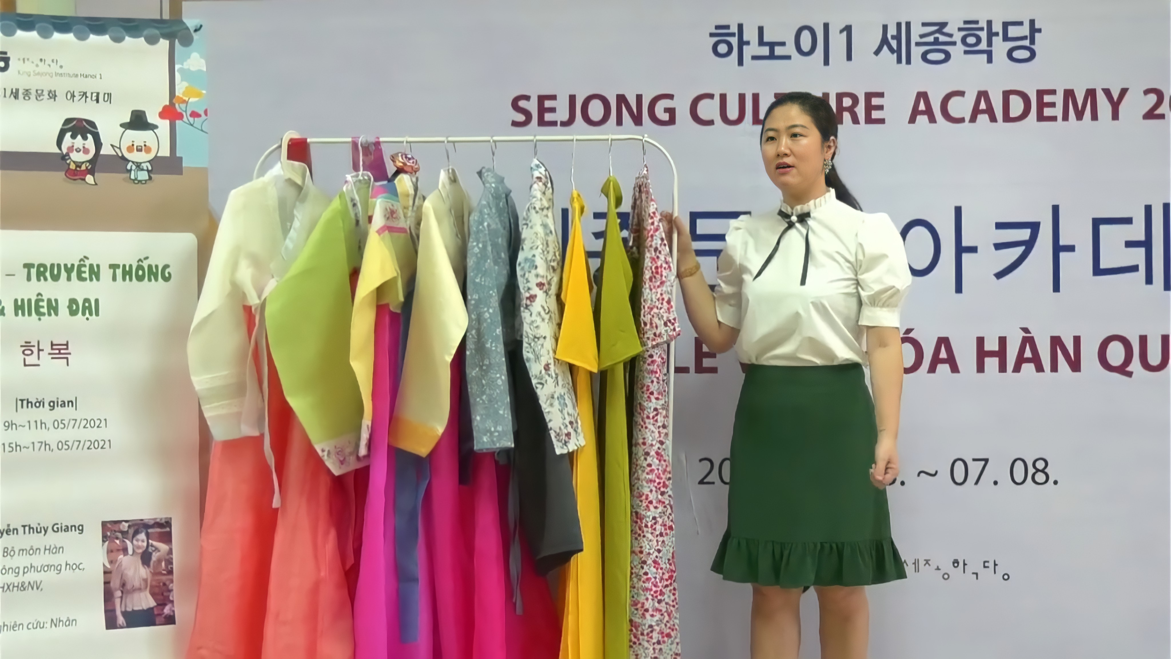 7월 5일에 Nguyen Thuy Giang 강사의 가르침 하에 한복수업이 진행되었다. 한복 수업을 통해 수강생들은 한복의 역사에 대해 더 잘 이해할 뿐만 아니라, 한복 입는 법을 알아보면서 종이한복을 접어봤다. 이 강좌를 통해 한국 전통의복의 아름다움을 잘 느끼게 되었다.