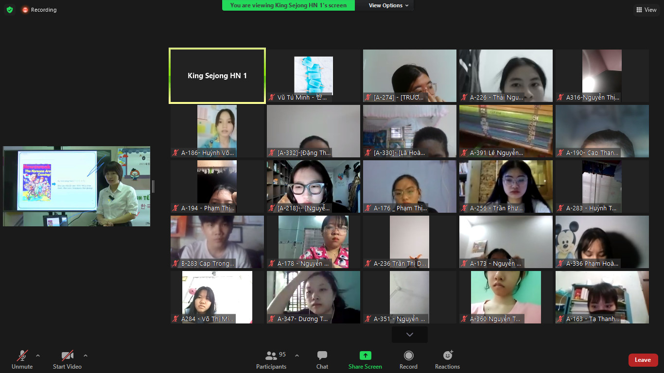 7월 8일 오전 하노이1 세종학당에서 세종문화아카데미 프로그램의 폐막식이 줌으로 진해되고, 선생님들과 수강생들이 다같이 기념동영상을 감상했다.