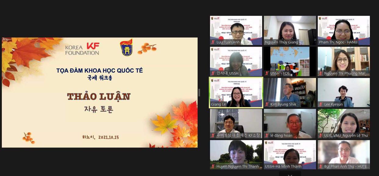 이 국제 워크숍에는 주 베트남 한국대사, 주 베트남 한국국제교류재단 대표와 하노이국립대학교 사회인문과학대학교 대표들이 참석하였다. 그동안 양국의 협력 과정에 추진된 정책이나 주장의 효율성을 검토하여 그와 관련된 정치, 경제, 외교, 문화, 사회, 교육 분야 등의 협력 가운데 나타난 장단점과 문제점을 분석하고 앞으로 나아갈 수 있는 방향을 모색하기 위해 한국국제교류재단(Korea Foundation)의 후원을 받았다.