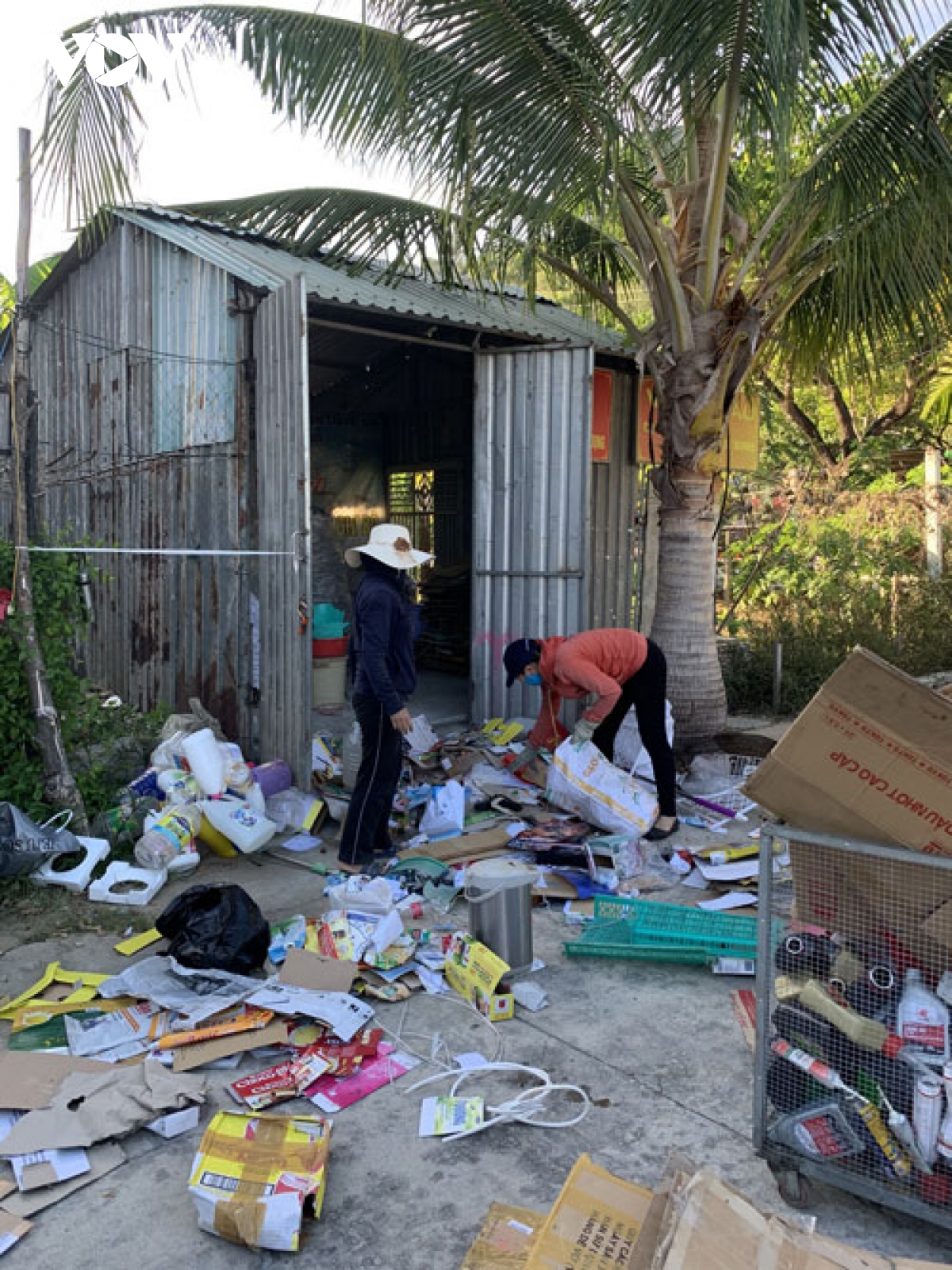 창고에서 플라스틱 쓰레기와 파지 따위가 분리수거 된 후 형편이 어려운 여성 및 가난하지만 면학에 힘쓰는 학생들을 위한 기금을 형성하기 위해 판매된다. [사진: VOV] |