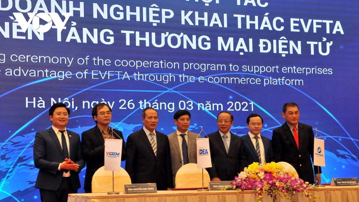 3월 26일 전자상업 플랫폼으로 EVFTA 협정 활용 기업 지원을 위한 협력 프로그램 출시식의 모습 |