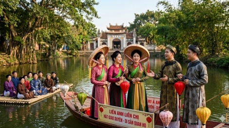(VOVWORLD) - '핫쏘안'(Hát xoan)은 푸토(Phú Thọ)성에서 전해 내려온 아주 특별한 제례 민요로, 주로 봄철 마을 사당에서 불려 왔습니다. 핫쏘안은 단순히 보고 즐기는 공연을 넘어, 우순풍조(雨順風調) 및 국태민안(國泰民安)을 기원하는 의례이기도 합니다. 오늘은 푸토 지역만의 특색 있는 핫쏘안 선율을 함께 감상하시기를 바랍니다.