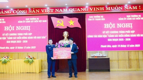 (VOVWORLD) - 12월 15일 오전 베트남 북중부 지방 타인호아(Thanh Hóa)성에서 베트남 해양경찰 사령부 당 위원회 상임부는 타인호아성 당 위원회 상임부와 협력하여 2025~2030년 단계 ‘어민과 동행하는 해양경찰’을 주제로 한 대중동원 프로그램 전개회의를 개최했다.