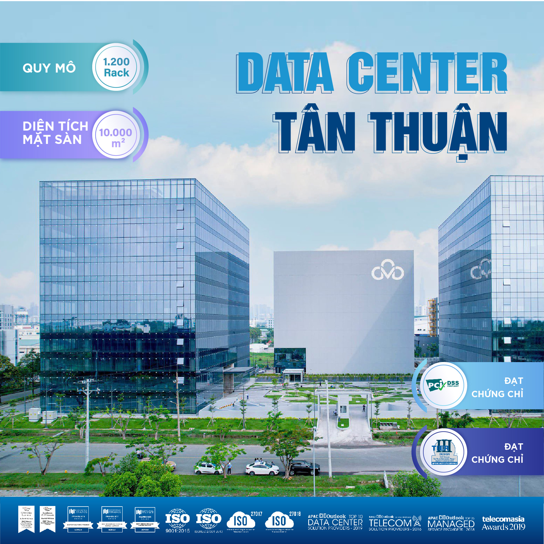2022년 초 CMC Telecom은 호찌민시 떤투언(Tân Thuận) 데이터 센터를 10,000 m² 규모로 Uptime Tier III 기준에 따라 건설하고 운영을 시작했다. 해당 데이터 센터는 1,200개 rack을 최대 20kw/rack인 대용량으로 제공한다. 2022년 5월 Uptime Institute는 현재까지 떤투언 데이터 센터가 베트남에서 가장 많은 테스트를 거쳐 최초로 TCCF(Tier Certification of Constructed Facility) 자격증을 획득하며 베트남 내 가장 현대적이고 안전한 데이터 센터가 되었다고 발표했다. CMC Telecom은 앞으로 국내 회사에서 글로벌 회사로 발전하여 인적자원을 양성하고 국제 기준에 부합하는 서비스 상품을 표준화할 것으로 목표를 세웠다. 당 뚱 썬(Đặng Tùng Sơn) 부회장은 다음과 같이 밝혔다.