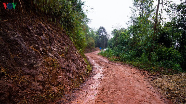콴라산(Khoan La San)산 기슭에서 0번 경계석으로 향하는 미끄러운 비탈길