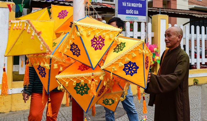 | 지에우떼 (Diệu Đế)사원은 많은 종류의 연등으로 장식되어 있으며, 이곳은 5 월 28 일 불교 행렬의 출발점이다. |