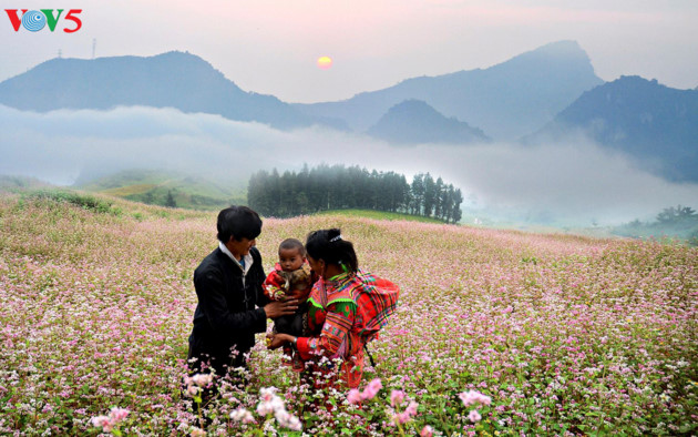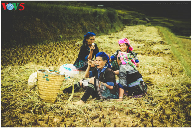 | Tay Bac고지에서 흔히 볼 수 있듯이 식구들이 모두 함께 논밭에 나가 있는 모습. 어른들은 일하고 아이들은 부모 곁에 놀고 있다. – Nguyen Anh Tuan |