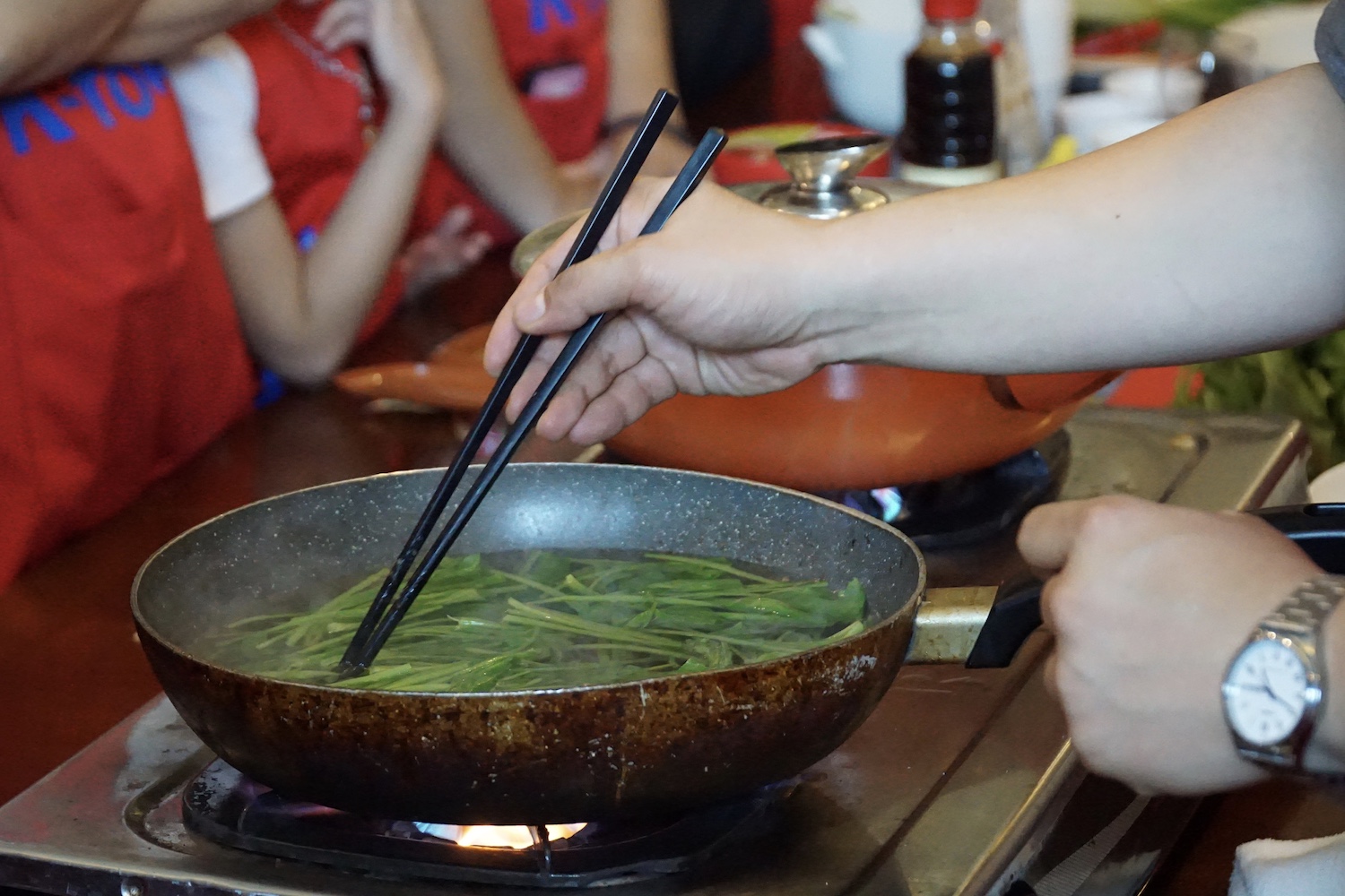 이원일셰프가 참가자들에게 열정적으로 가르쳐 주고 있습니다.