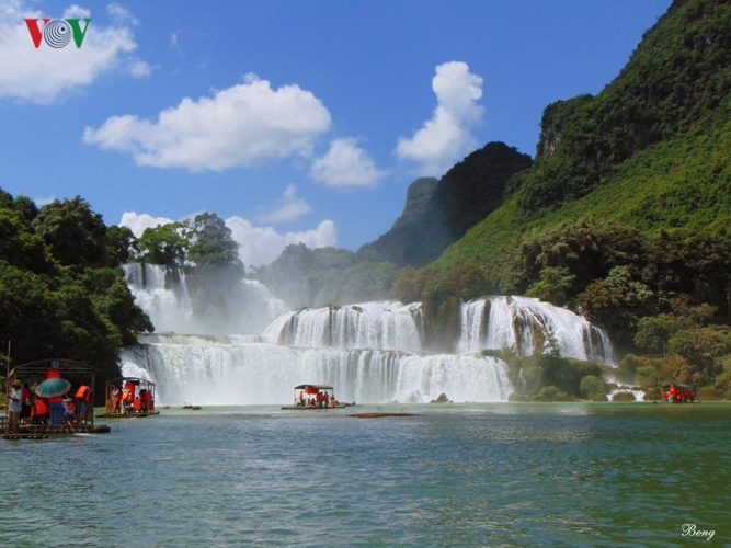 Cao Bang 세계지질공원에서 위치하고 있는 베트남에서의 가장 웅장하고 아름다운 Ban Gioc 폭포는 Cao Bang성, Trung Khanh현, Dam Thuy읍에 속한다. 폭포는 30미터 높이에서 석회암 위로 쏟아진다..