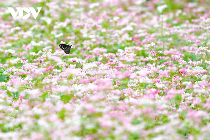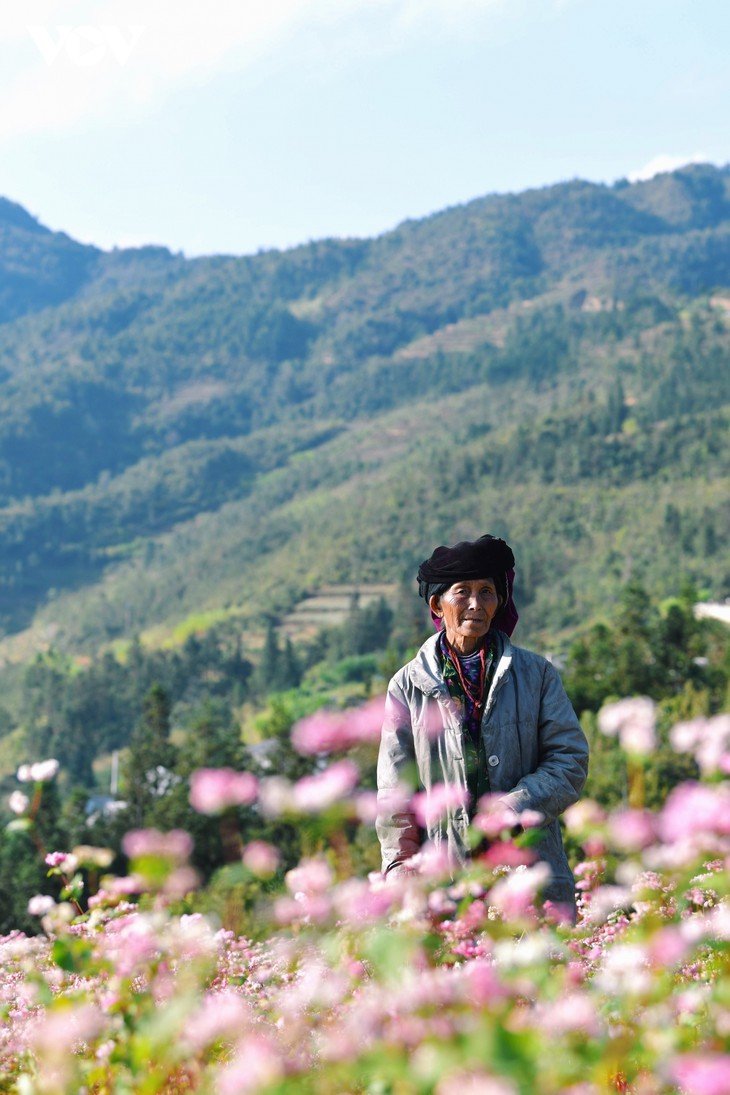 꽌바(Quản Bạ), 옌민(Yên Minh)에서 매오박(Mèo Vạc), 동번(Đồng Văn)까지 언덕을 따라 펼쳐진 광활한 꽃밭은 신비롭고 시적이고 낭만적인 고대 유적과 같은 광경을 만들어 낸다.