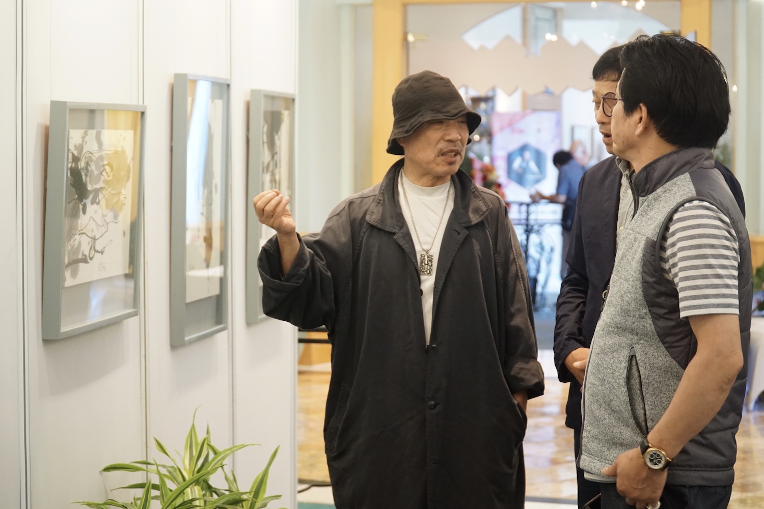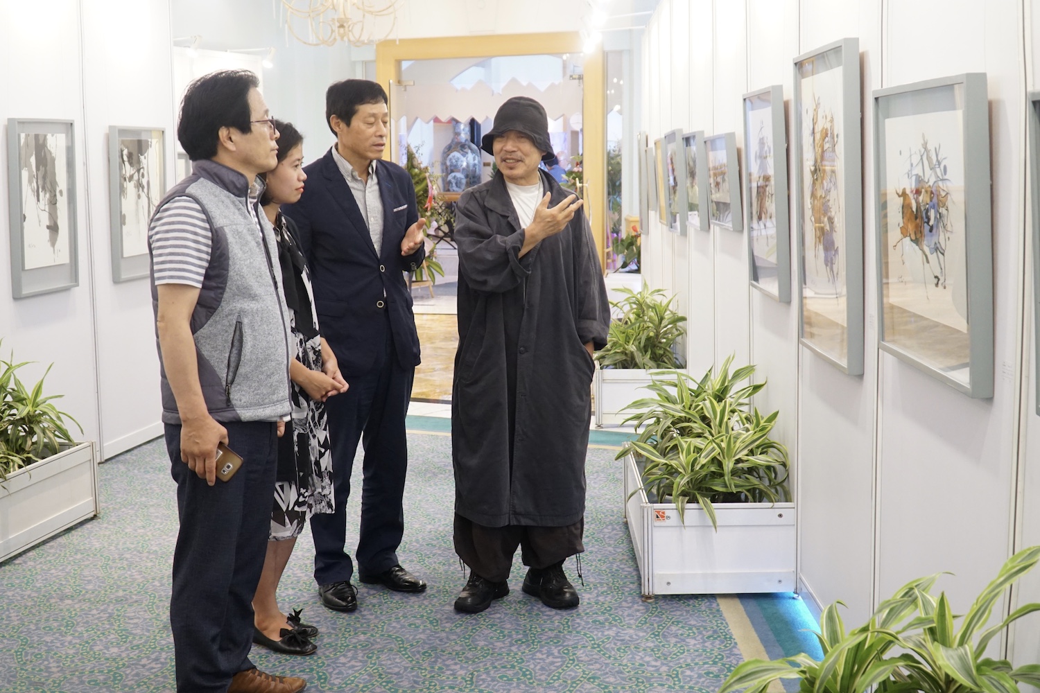 | 화백은 관객들에게 작품을 열정적으로 소개하였다. |