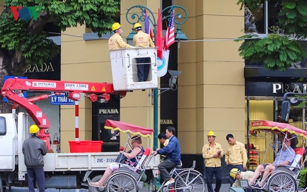 | 한국 관광객들은 2차 미국-조선 정상회의 준비 모습을 찍느라고 분주하다. <사진 : 쭝히에우/VOV.VN) |