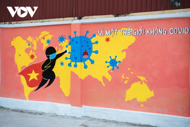 | 코로나19 방역 정보 제공과 선전을 위해 하동 (Hà Đông) 군 당국은 화가들과 협력하여 부 쫑 카인 (Vũ Trọng Khánh) 거리에 벽화를 그리기로 했다. |