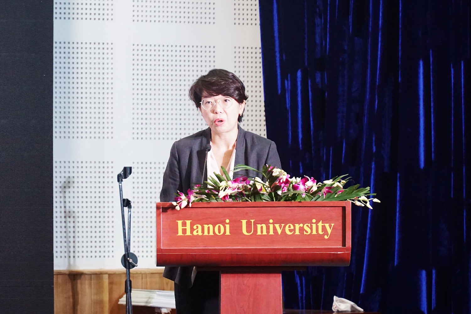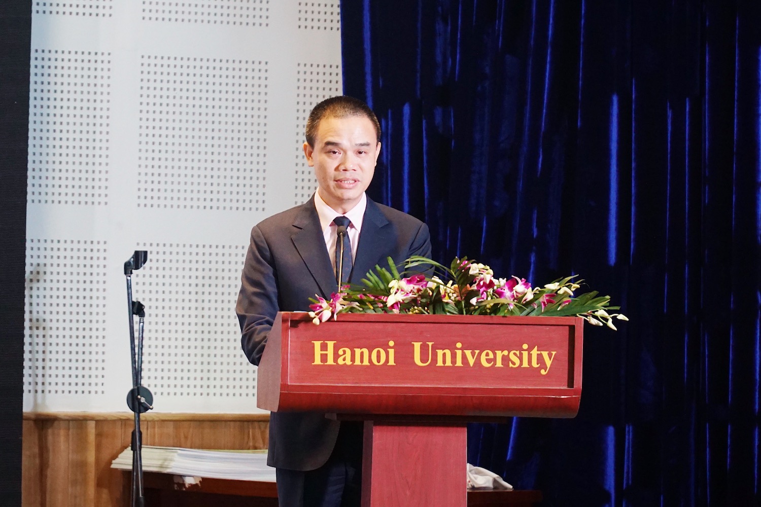 하노이 대학교의 총장인 응웬 반 짜오 (Nguyễn Văn Trào)는 축사를 연설합니다.