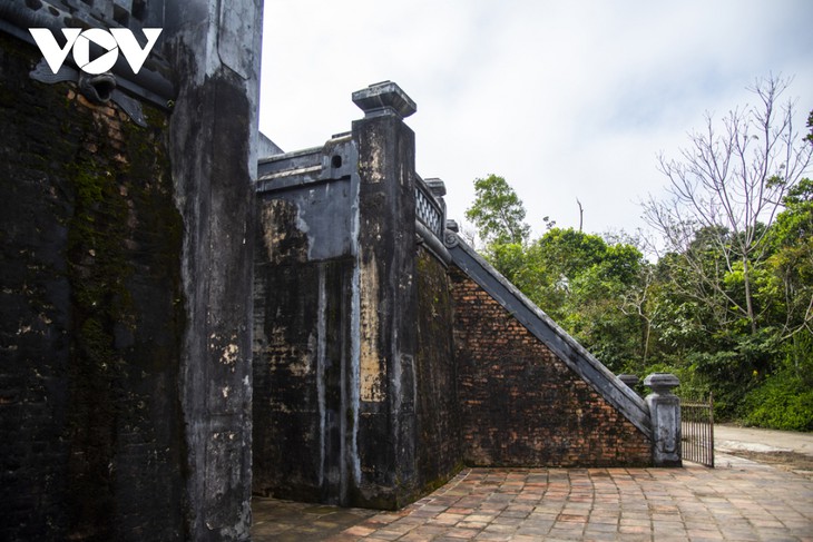 ![]() 호이구엔는 동심원 모양으로 된 두 개의 벽 고리로 구성되어 있다. 안쪽 고리는 5.90m, 바깥쪽 고리는 4.75m(난간 포함)이며, 양쪽 벽 고리와 가운데 흙 띠를 더하여 꼭대기에는 4m, 정성에는 5m의 두께를 이루고 있다